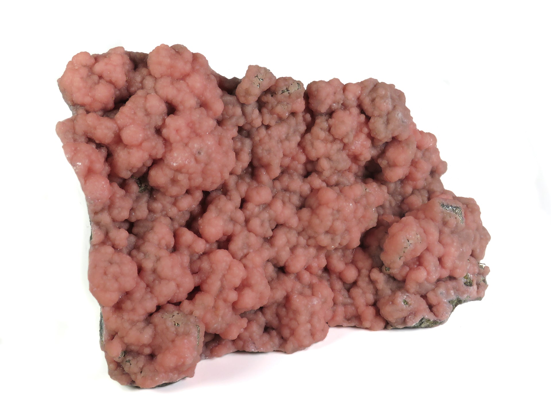 Located in the Aomori Prefecture, in the far north of Japan's Honshu island, the Oppu Mine is one of the most famous Japanese localities in the mineral collecting world solely from the quality rhodochrosite that came from there. Here one can see richly colored botryoidal crystals layered across a sulfide matrix, with the underlying layer of pyrite visible in patches where the rhodochrosite stopped forming. The mine's primary operational lifespan lasted from back in the 17th century until 1979. Specimens of this style typically date to pre-WWII times, if not late 1800's, and examples of this size are rarely available. Oppu rhodochrosite is always highly sought after, and this is an exceptionally showy example why!