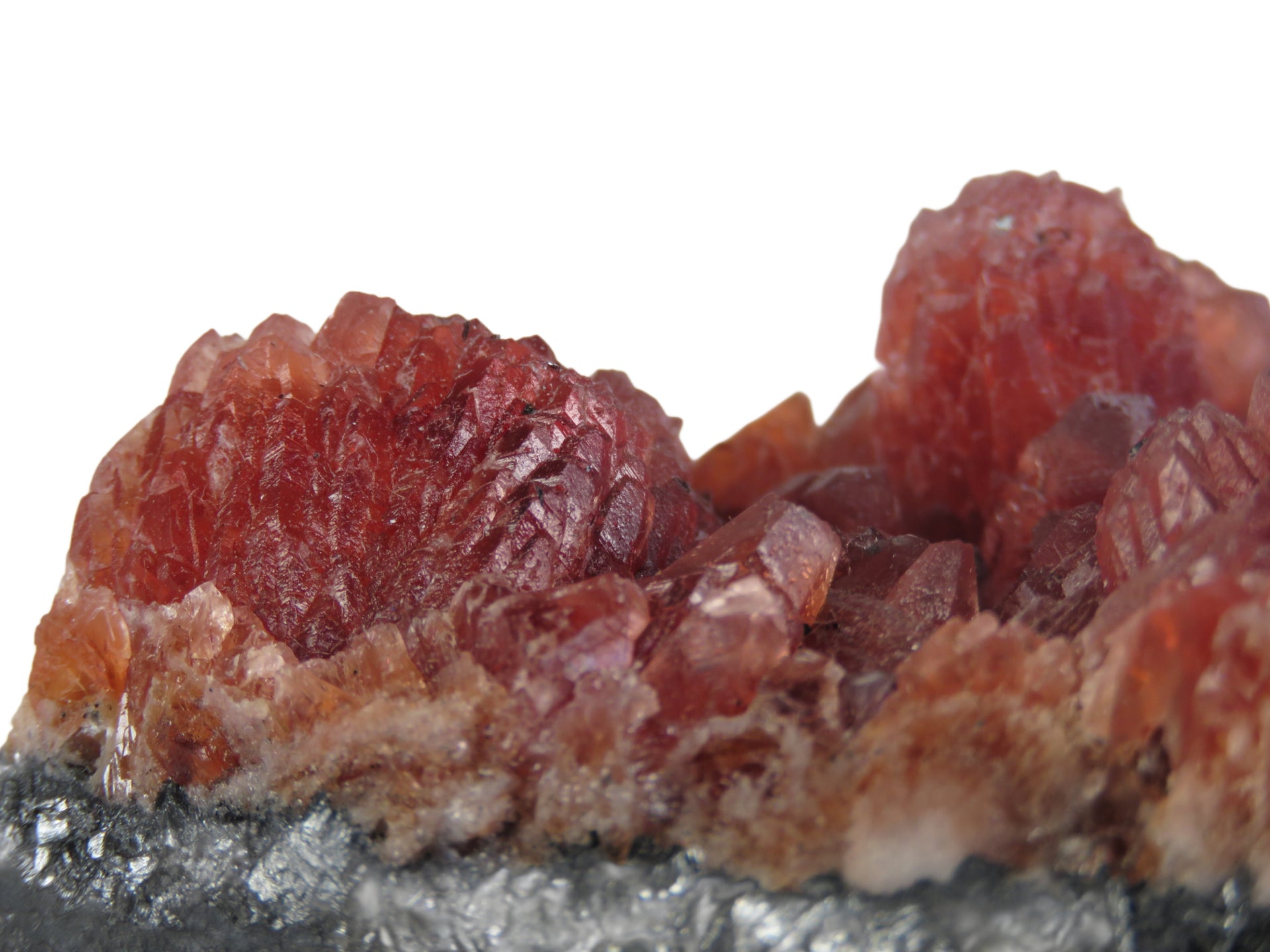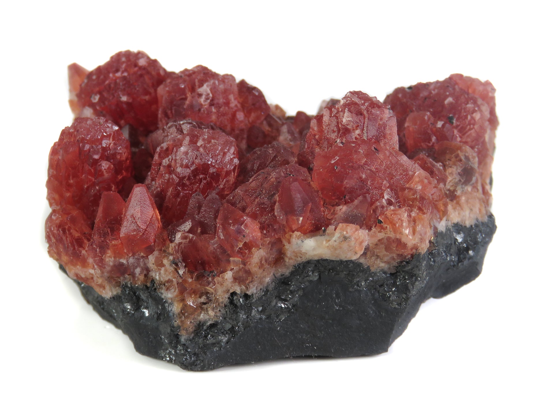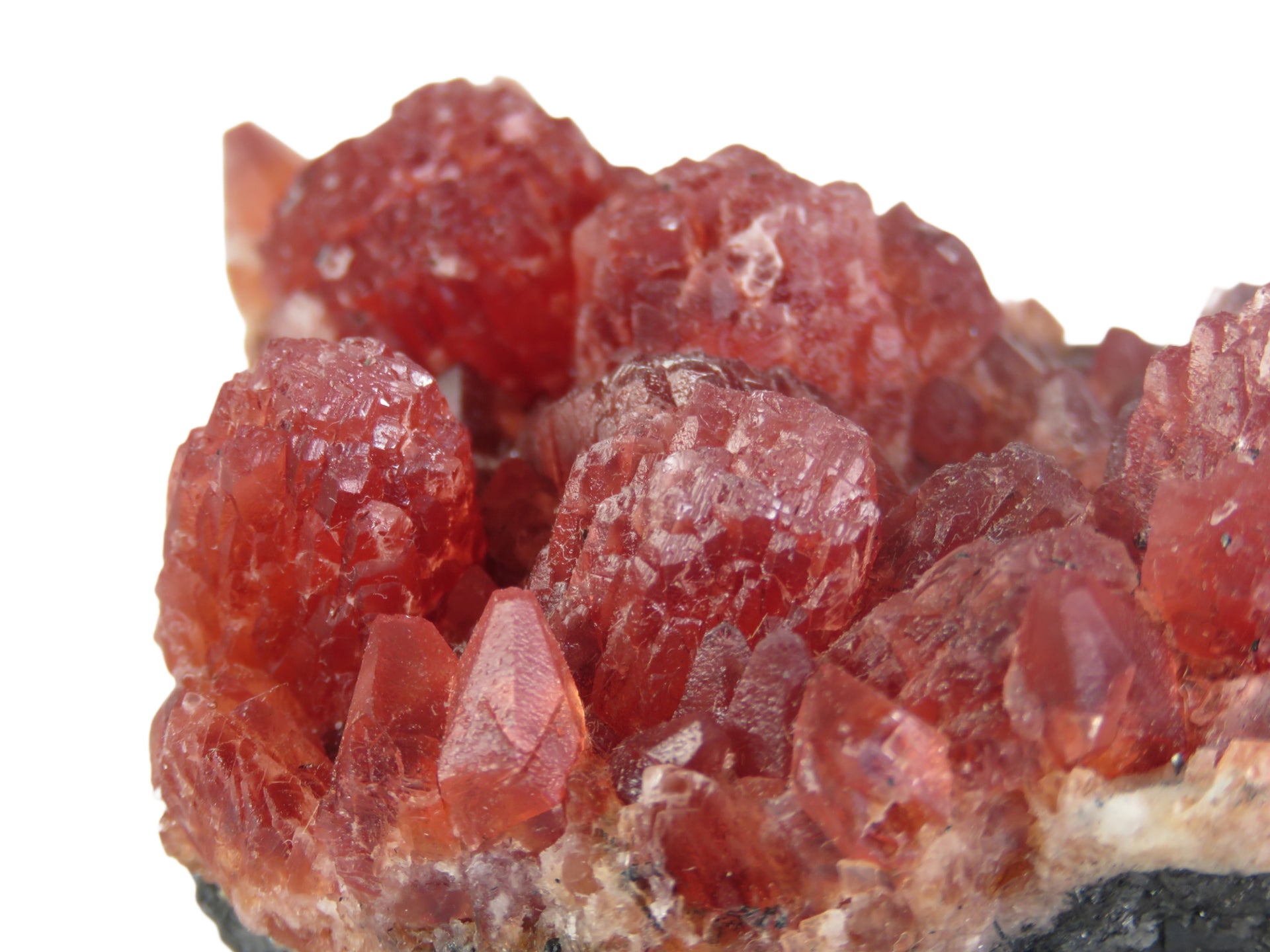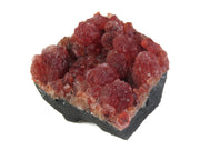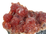 Full coverage of gemmy, rich, raspberry red rhodochrosite hosted atop a bed of manganite matrix. A majority of the crystals are formed as tightly bunched clusters of scalenohedra which are truncated to give the tops of the clusters an almost rounded look, while still showing sharp faces along the sides. Some tiny quartz growths are visible atop the crystals and around their bases. This particular growth style is both highly desirable and characteristic for the Hotazel Mine, which preceded the finds at the N'Chwaning Mines. Individual scalenohedra are also present throughout, and the excellent translucency makes it absolutely glow with backlighting! Although it was sold to us as having come from the N'Chwaning mines, we can, again, say that it's almost certainly older Hotazel material based on style. Some very minor nicks and edge wear are present, yet it feels like splitting hairs to mention, considering in how good of condition it is for this material. For a locality whose specimens frequently reach five- and six-figure range prices, this is an excellent and more affordable example.