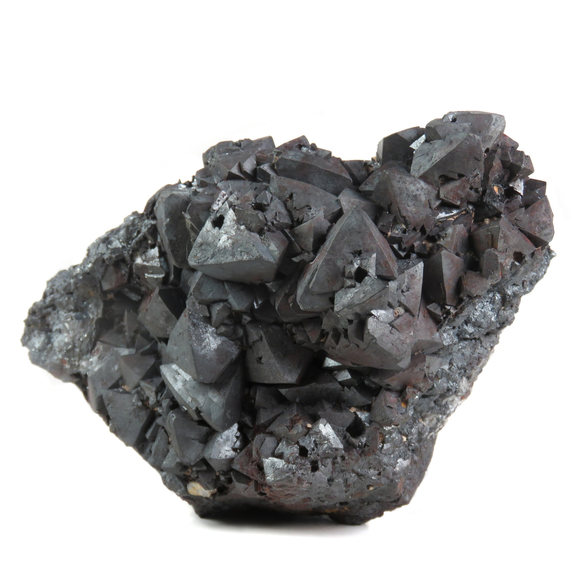 As far as magnetite crystallization goes, this cabinet-size specimen checks all the boxes. All across the front are textbook octahedral crystals measuring to 1.7 cm, with classic gunmetal grey color and some reddish hues caused by oxidation. These specimens were extracted in the early 2000's, and they really don't turn up for sale all too often. Magnetite may not be a rare mineral, but specimens with this quality of display certainly are! The main display area is in excellent condition, the only detractions are around the edges and on the backside from where the piece was extracted.