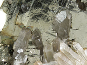 Trepča is a distal Pb-Zn-Ag skarn developed in Upper Triassic recrystallized limestone, formed in two stages: a high-temperature prograde phase dominated by clinopyroxene, followed by a retrograde open-system stage that deposited pyrite, quartz, carbonates, and the bulk of the sulfide ore at around 350°C. Pyrite at Stari Trg is notable for occurring in two distinct modes - sharp cubic and pyritohedral crystals on quartz matrix, and blocky hexagonal pseudomorphs after pyrrhotite that rank among the finest examples of that replacement known anywhere. The quartz accompanying both forms tends toward slender, transparent prismatic crystals with excellent terminations, sometimes arranged in radiating hedgehog clusters that contrast sharply against dark sulfide matrix. Trepča has been mined intermittently since Roman times and industrially since the 1920s, with specimen quality varying considerably by horizon and time period; pre-war material from before 1998 is particularly sought after as the mine flooding and subsequent reopening in 2005 disrupted access to previously productive levels. The mine remains active, and fine pyrite-quartz combinations still emerge periodically, though inconsistently.